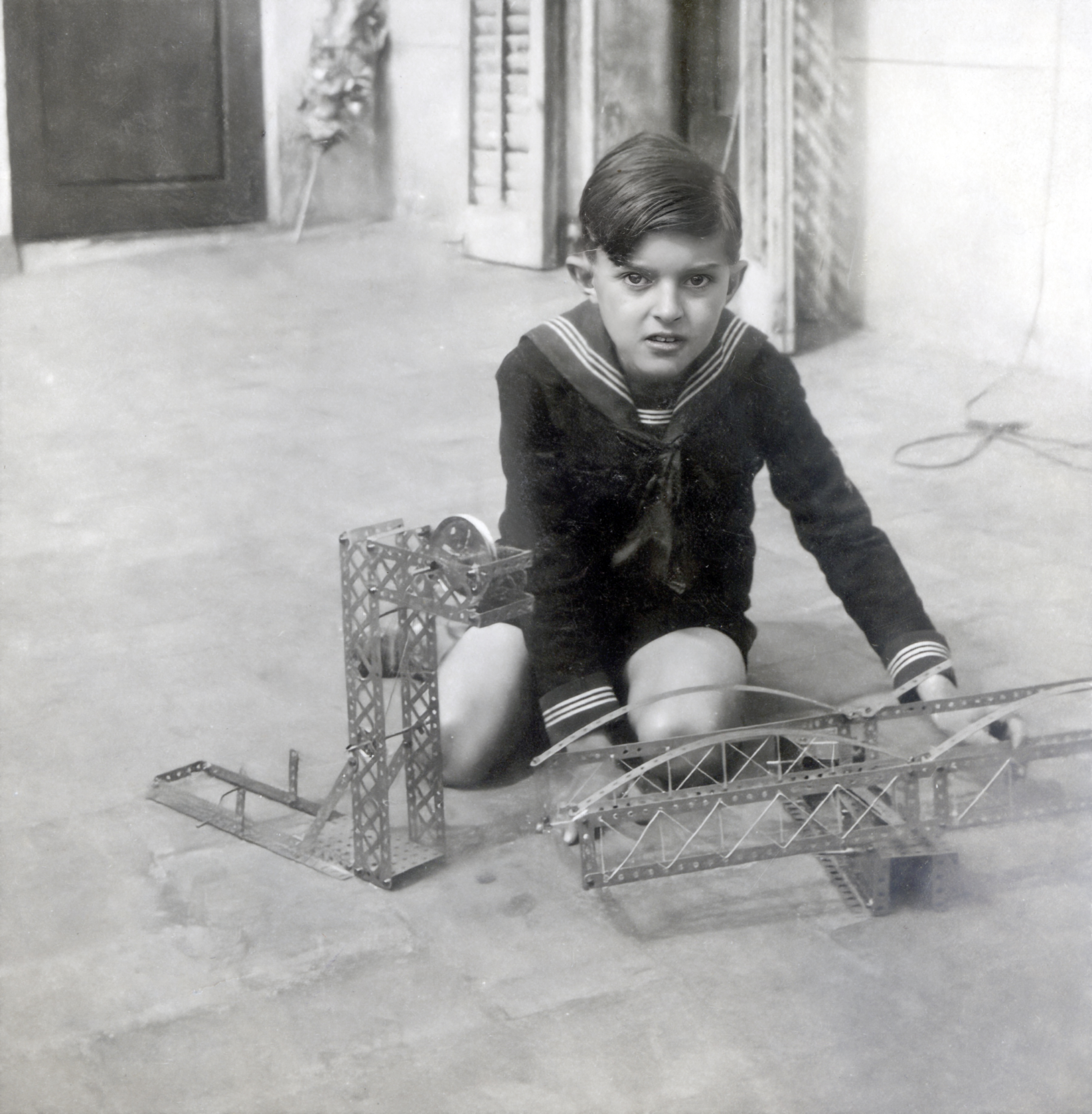 An image from interwar Barcelona is quite ambivalent. It shows a boy sitting on the floor – possibly in the yard or balcony of his house – dressed in his best sailor suit, his expression difficult to interpret. Metal construction sets are placed before him, but he doesn’t seem to be enjoying himself. The boy is Joan Ainaud de Lasarte (1919–1995), who became a historian and art critic. He was the son of Manuel Ainaud Sánchez (1885–1932), a pedagogue, artist, and pioneer of photography in Catalonia. The picture is from 1928, the boy was therefore around nine years old. The photograph seems to be staged, the work of the proud parent who perhaps wanted to show that his son spent time with complex technical toys. The image offers hints – but no answers; in any case, it helps us to come closer to the boy and empathise with him.
