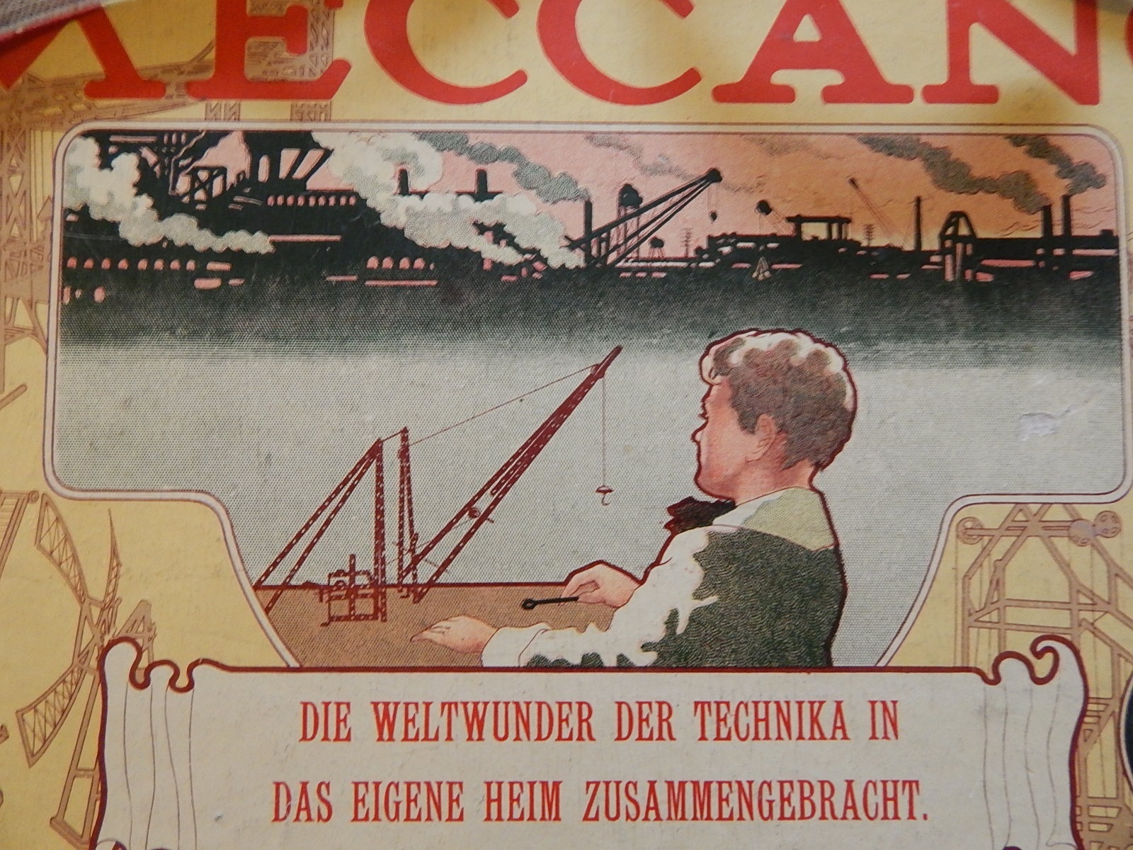 Consider the illustration from the cover of an early twentieth-century British Meccano metal-set box for the German market. It shows an elegantly dressed boy sitting in front of a table and constructing a metal crane, his back turned to the viewer of the image. In the background that the boy faces, there is an imposing industrial landscape of factories, cranes, chimneys, and smoke. The caption reads: ‘The world wonders of technology brought together in your own home’. The boy is situated in a neutral and somehow surreal space, neither inside nor outside. His face is not shown, thus allowing us only to imagine his expression and speculate about his feelings. Is he inspired by the view that exemplifies technological potential? Is he dreaming of his own future as an engineer? Or is he perhaps overwhelmed by the complexity of the world lying ahead of him? The picture is ambivalent and open to interpretation; it certainly does not reflect the jauntiness so often associated with childhood. It rather represents adult emotions towards the unknown – the uncertain, collective future – symbolised by children.